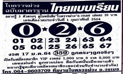 16 กุมภาพันธ์ 2564 ตรวจหวย 16/2/64.